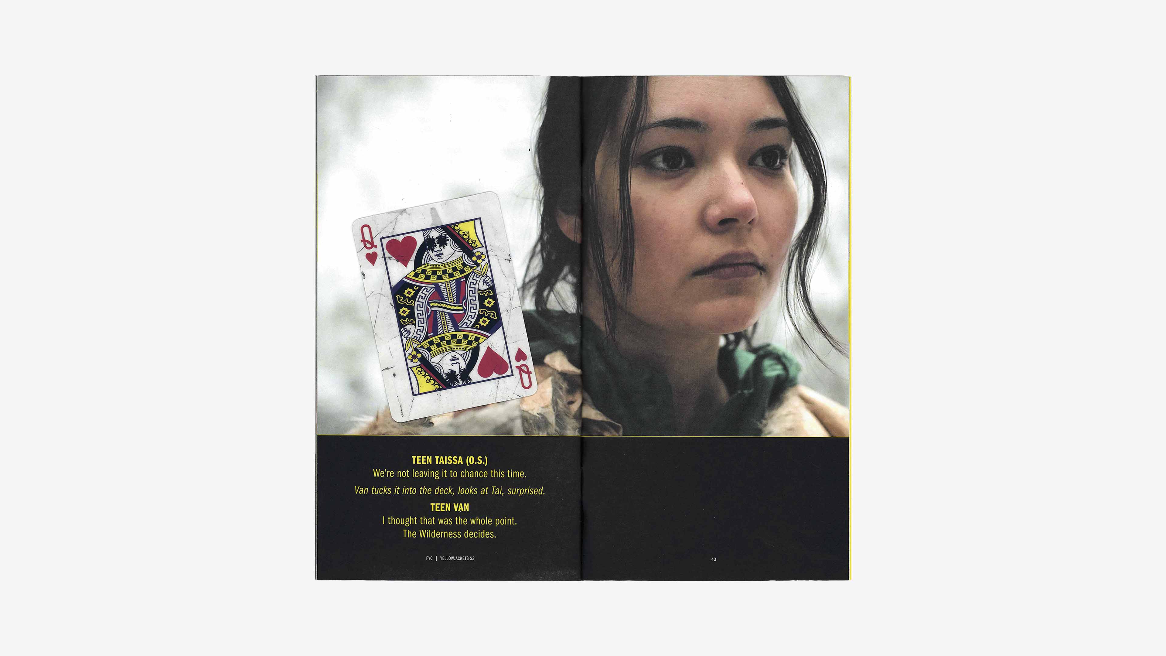 This FYC booklet set out to mimic a 90s wilderness guide but with a Yellowjackets personality. We did this through a minimalist page layout, the choice of brand typefaces, color and punk-like cut out imagery, used to illustrate the sinister side of the show.